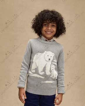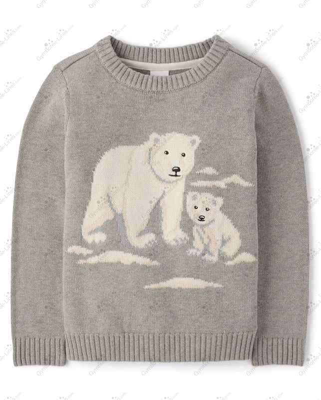 Gymboree TCP H/T Smoke Heathered Grey Gray Long Sleeves Intarsia Knit Polar Bear Crew Neck Sweater Pullover