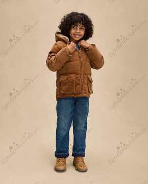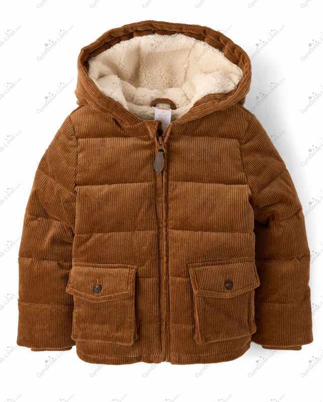 Gymboree TCP Antler Brown Corduroy Puffer Jacket Cream Sherpa Lined Hooded Hoodie Zip Up Button Flap Pockets Banded Rib Knit Cuffs