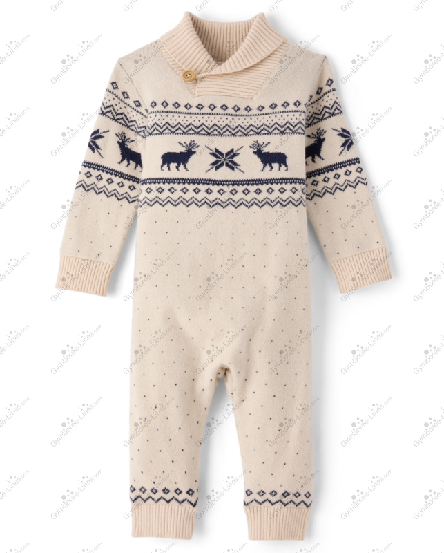 Gymboree TCP Country Cream Fairisle Reindeer Birdseye Stitch Tidal Blue - Navy Shawl Collar Sweater Knit Jumpsuit Romper Long Sleeves Rib Knit Cuffs Snaps at Bottom