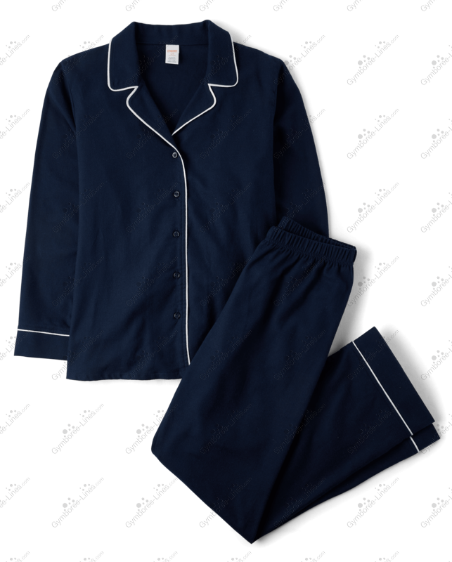 Gymboree TCP Tidal Blue - Navy Sleepwear Pajamas Gymmies 2 Piece Two Piece White Contrast Piping Trim Button Front Top Pull On Bottoms Women's Mommy Matching Family Looks OEKO-TEX STANDARD 100