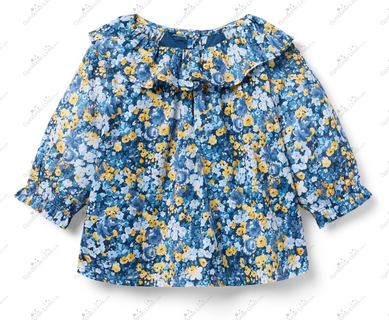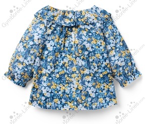 Top Blouse Floral Flower Ruffled Collar Button Back Elasticized Ruffle Cuff Shirt