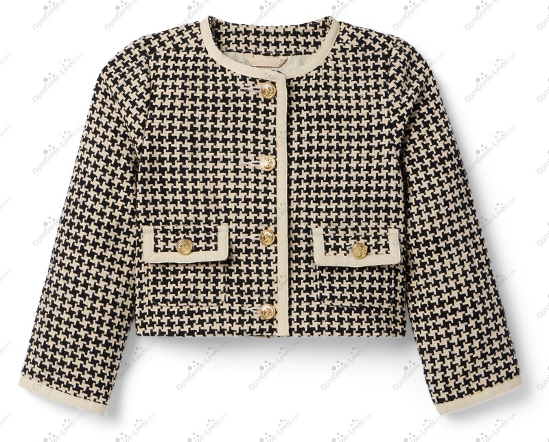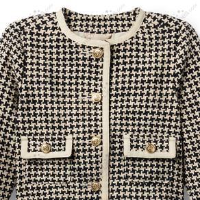 Jacket Coat Long Sleeves Button Up Pocket Houndstooth Tweed Suit Gold Tone Buttons