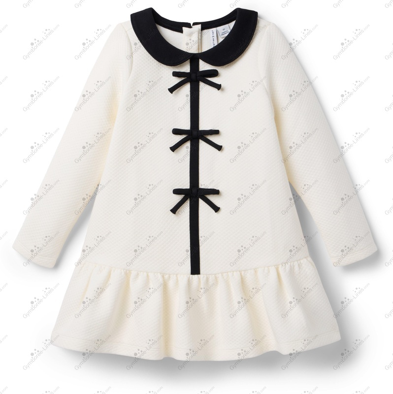 Dress Long Sleeve Bow Collar Quilted Dropped Waist Dropwaist Button Back Bloomers Diaper Cover Diamond Quilting Peterpan Collar Peter Pan Collar Color Block Colorblock Shirred Winter Christmas Holiday