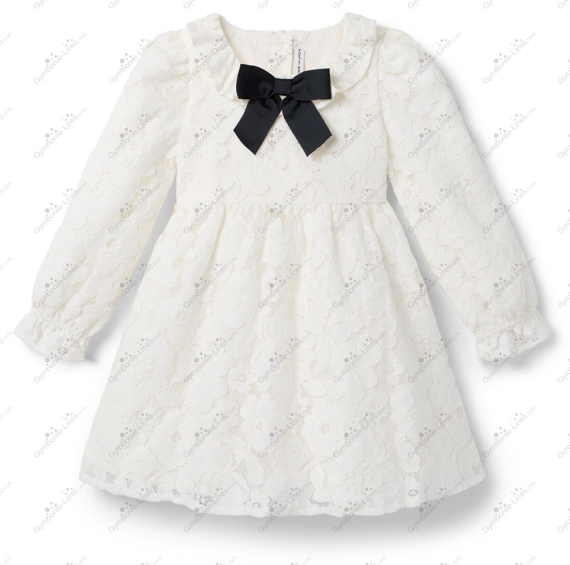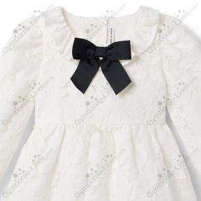 Dress Long Sleeve Bow Collar Button Back Shirred Ruffled Sleeve Bloomers Diaper Cover Lace Winter Christmas Holiday