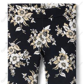 Pants Leggings Floral Flower Ponte Elastic Waistband Pull On Straight