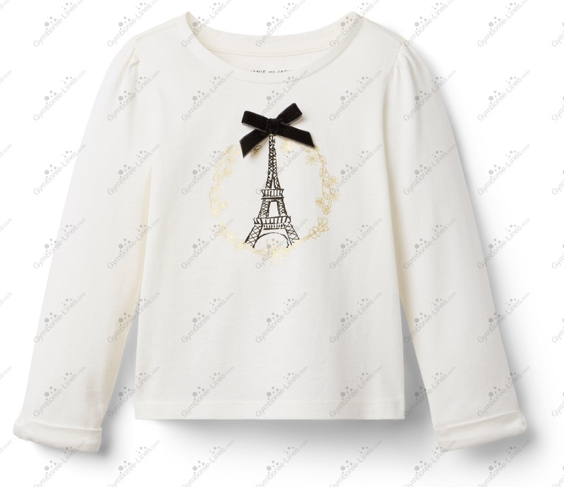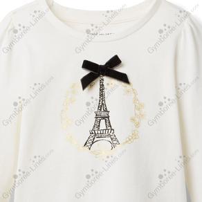 Topp Shirt Long Sleeves Bow Eiffel Tower Paris Pull Over Tween Velvet Bow