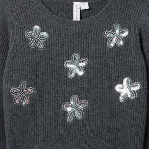 Top Sweater Pullover Flower Floral Sequin Long Sleeve Winter Holiday Christmas Tween