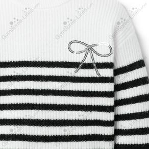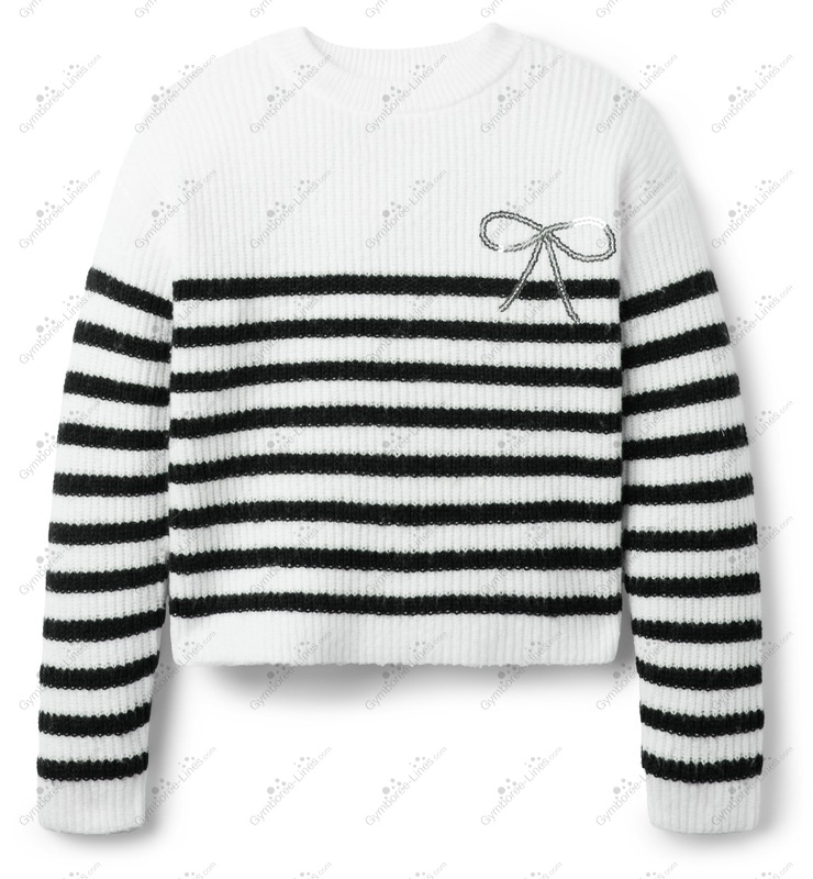 Top Sweater Long Sleeve Striped Bow Pullover Sparkle Sequin