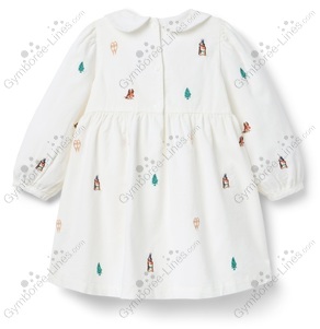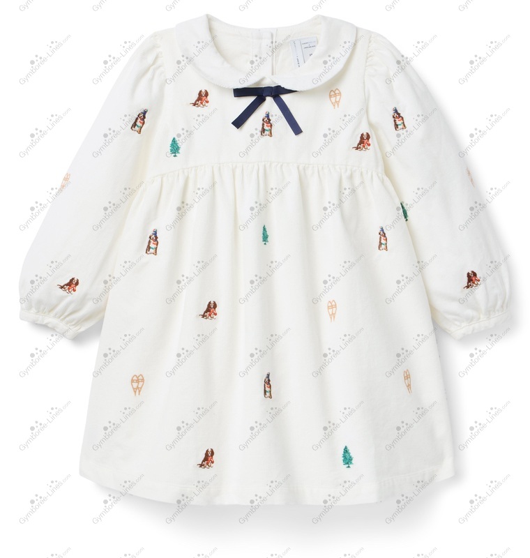 Dress Long Sleeve Corduroy Collar Peterpan Collar Peter Pan Collar Gray Malin Button Back Bloomers Diaper Cover Shirred Embroidered Doggy Puppy Tree Christmas Holiday Winter Snow Shoes Bow