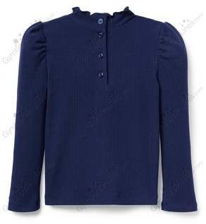 Top Shirt Long Sleeve Lettuce Edge Ruffles Ruffled Turtleneck Mock Turtleneck Ribbed Button Back Tween
