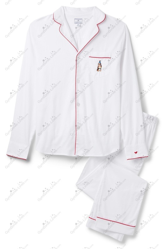 Sleepwear Sleeper Gymmies PJ's Pajamas Top Shirt Long Sleeve Button Up Doggy Puppy Contrast Piped Trim Pants Elastic Waistband Pull On Embroidered