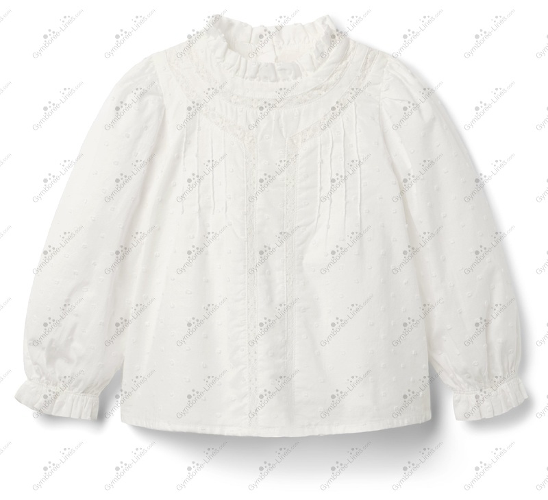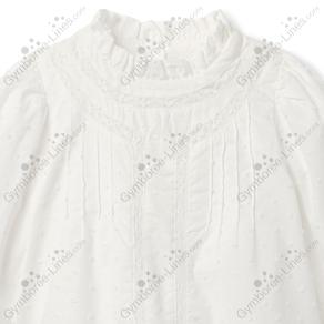 Top Shirt Long Sleeve Blouse Ruffled Mock Collar Mock Turtleneck Pintucked Pleated Elastic Ruffled Sleeve Lace Trimmed