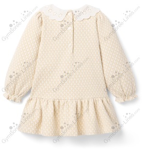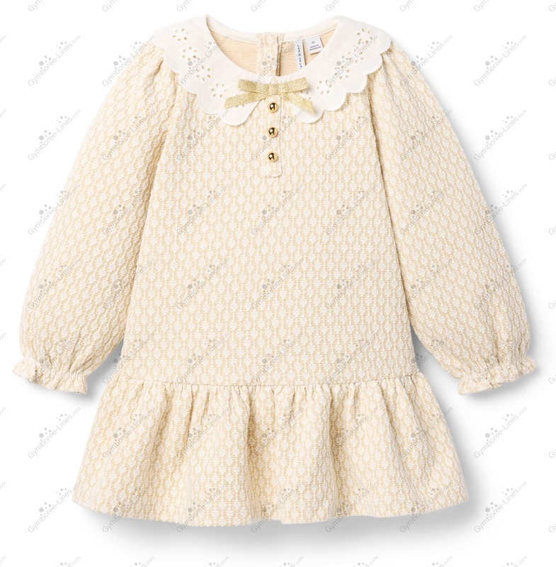 Dress Long Sleeve Tween Sparkle Jacquard Lace Collar Bloomers Diaper Cover Button Back Dropwaist Drop Waist Bow Gold Tone Buttons