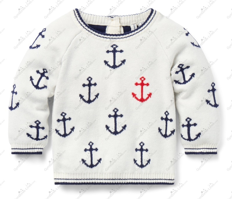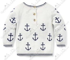 Top Sweater Pullover Anchor Button Back Nautical Long Sleeve