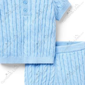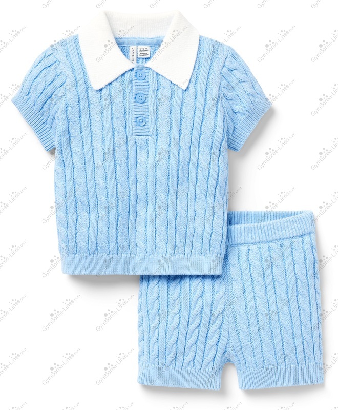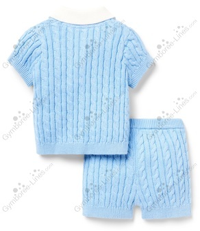 Two Piece Set 2 Piece Set Short Sleeve Collar Button Placket Cable Knit Basic Sweater Shorts Elastic Waistband