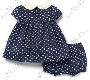 Dress Short Sleeve Bloomers Diaper Cover Button Back Collar Bow Two Piece Set 2 Piece Set Shirred