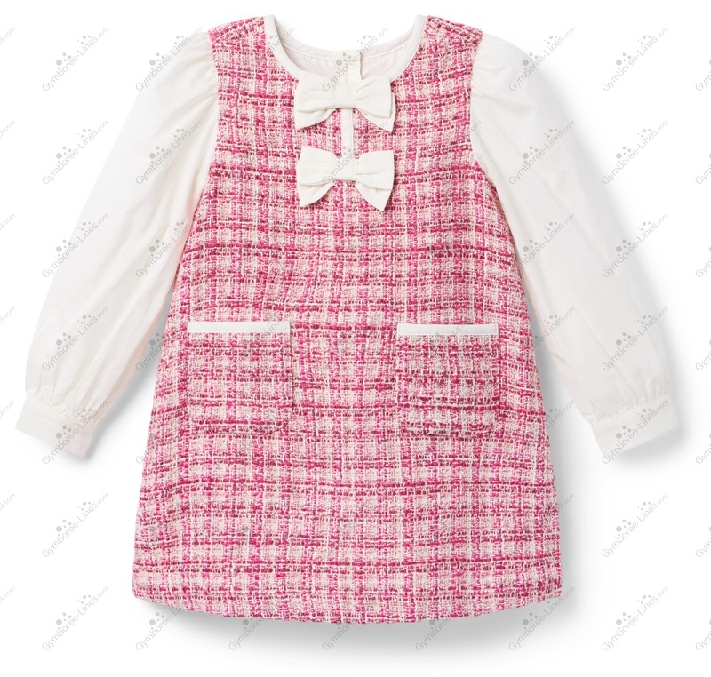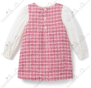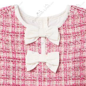 Dress Long Sleeve Button Back Bow Pockets Tweed Diaper Cover Metallic Detailing Blouse