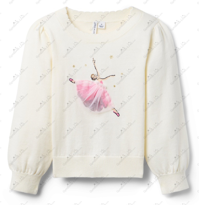 Top Sweater Long Sleeve Ballet Ballerina Pullover 3-D Tutu Screenprinted