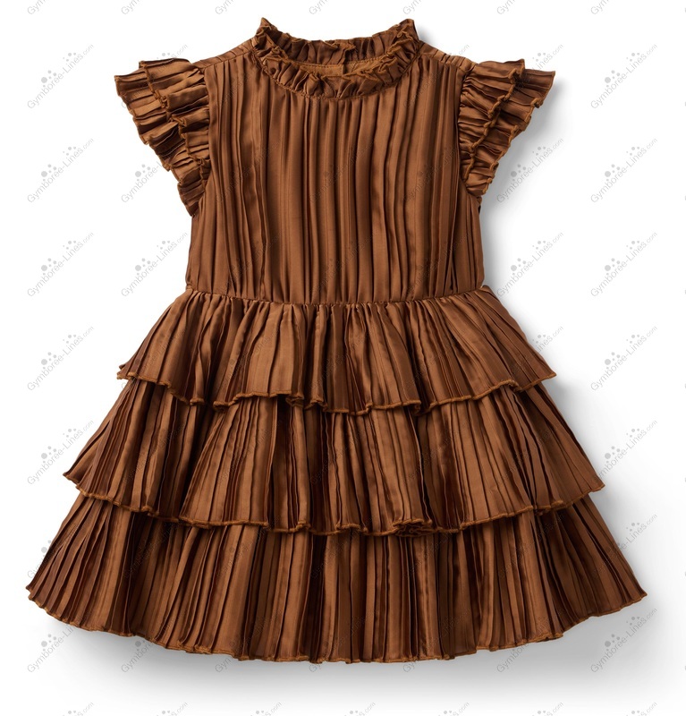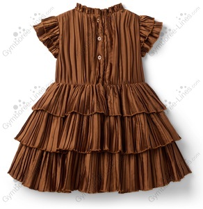 Dress Short Sleeve Ruffled Sleeve Ruffled Collar Button Back Tiered Bloomers Diaper Cover Pleated Tiered Silhouette Satin