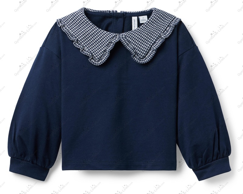 Top Sweater Long Sleeves Button Back Collar Herringbone Collar Puff Sleeve Sweatshirt