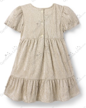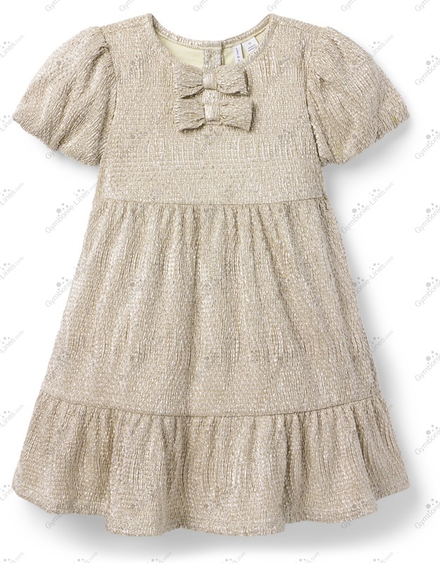 Dress Short Sleeve Metallic Gold Double Bow Bow Button Back Metallic Ruffled Hem Bloomers Diaper Cover Christmas Formal Wedding