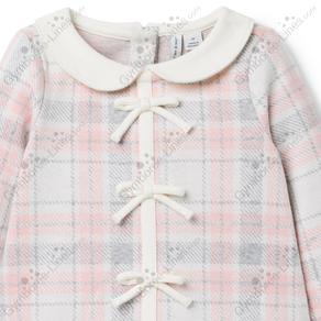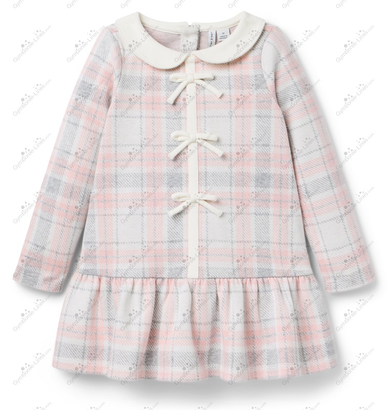Dress Long Sleeve Collar Bow Button Back Plaid Jacquard Bloomers Diaper Cover Dropwaist