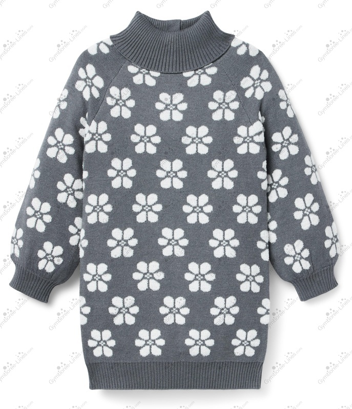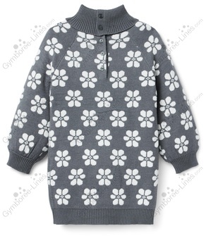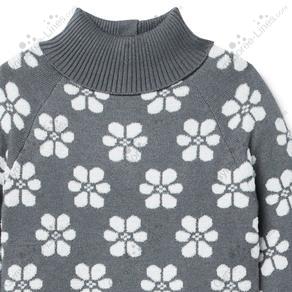Dress Long Sleeves Flower Floral Turtleneck Button Back Sweater
