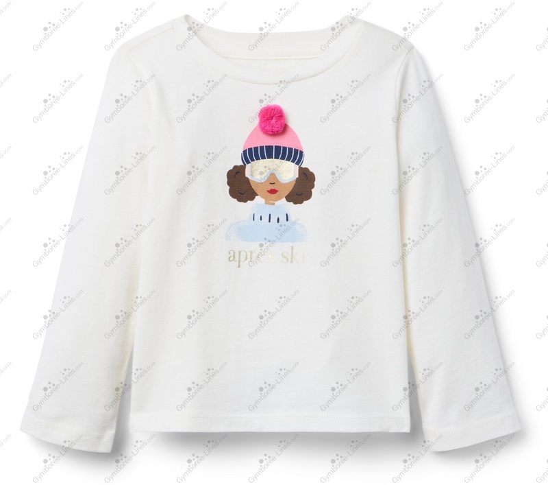 Top Shirt Long Sleeve Ski Skier Skiing Girl Hat Beanie Goggles PomPom Pom Pom