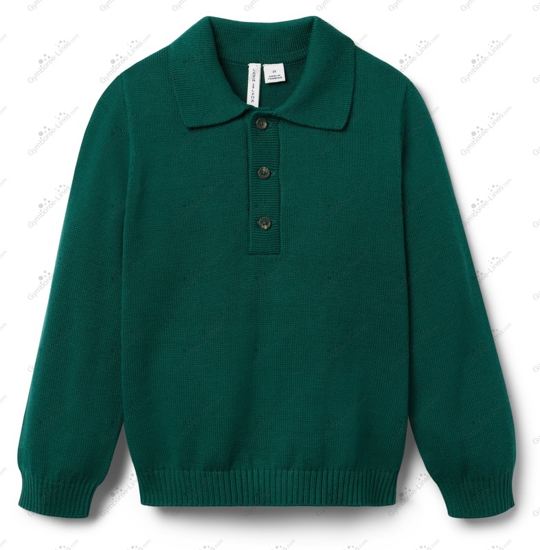 Top Sweater Collar Half-Button Placket Long Sleeves Dressy Polo Uniform Back To School