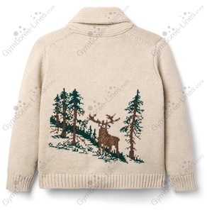 Sweater Long Sleeve Shawl Collar Shawl Neck Deer Reindeer Winter Holiday Christmas Button Up