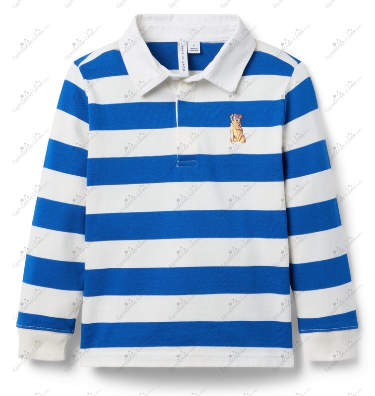 Top Shirt Long Sleeves Collar Button Placket Teddy Bear Gray Malin Rugby Stripe Embroidered