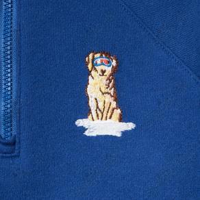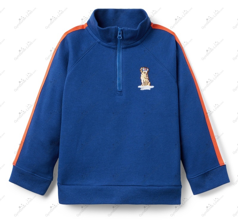 Top Long Sleeves Half-Zipper Doggy Puppy Mock Turtleneck Pullover Embroidered Sleeve Stripe