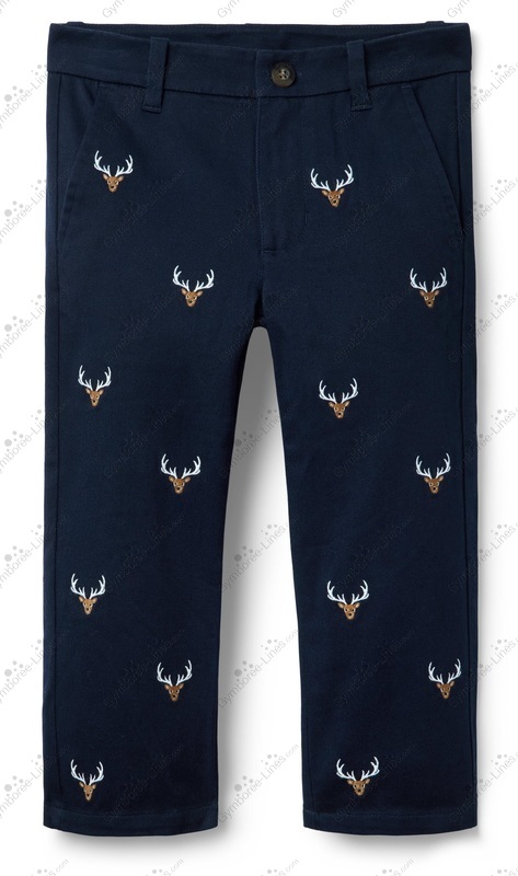 Pants Embroidered Button Up Zipper Reindeer Antler Belt Loops Straight Leg Twill