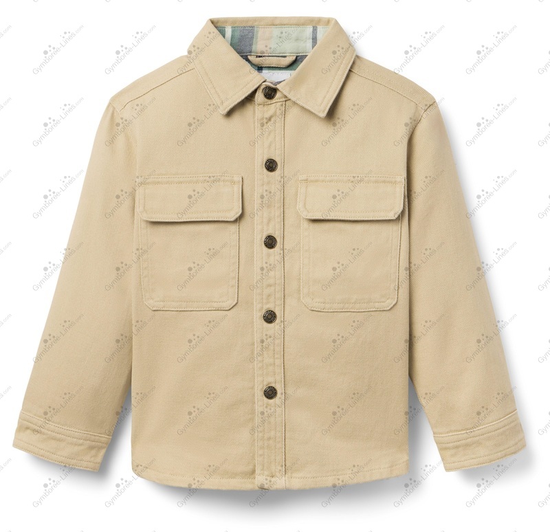 Jacket Coat Twill Shirt Jacket Pockets Snap Front Tween Plaid Lining Long Sleeve