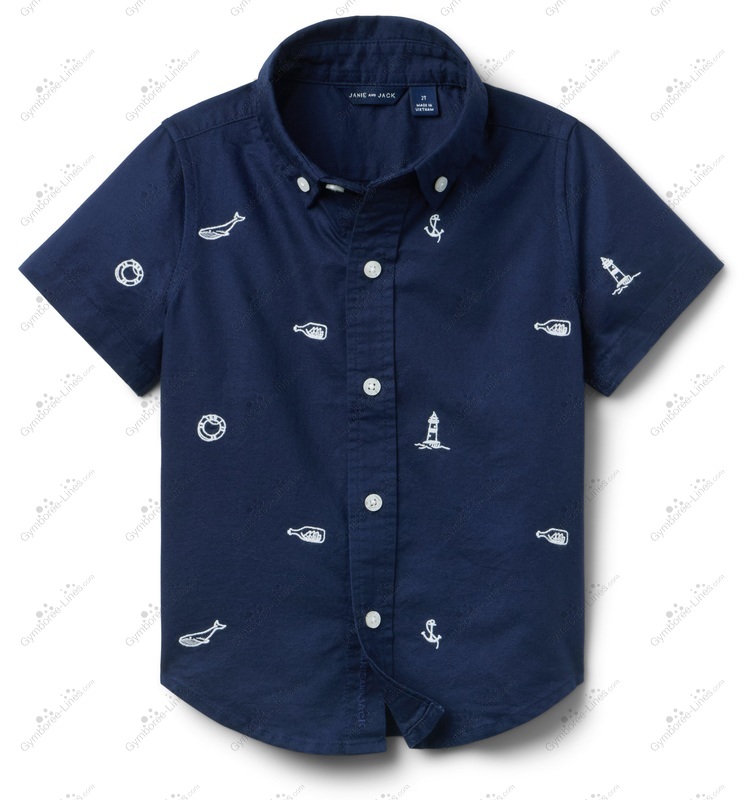 Top Shirt Short Sleeve Oxford Anchor Bottle Light House Life Preserver Whale Nautical Sailor Button Collar