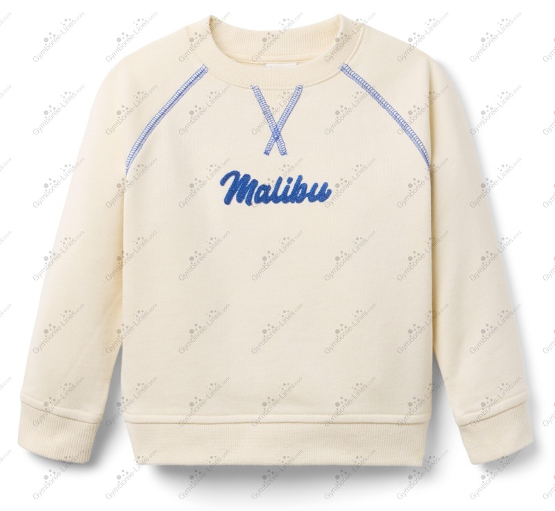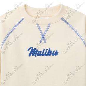 Top Sweater Long Sleeves Contrast Stitching Malibu Terry Sweatshirt Embroidered