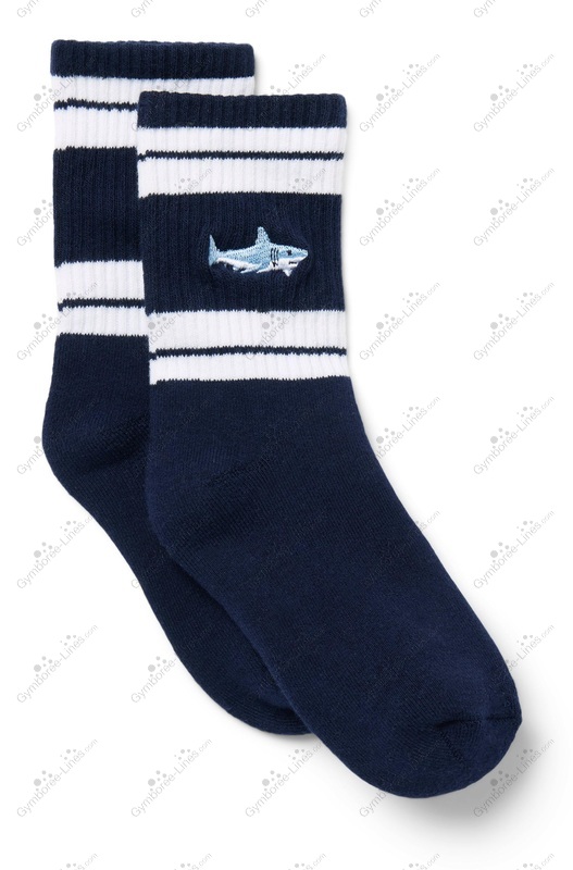 Socks Shark Sea Ocean Sports Striped Crew Sock Embroidered