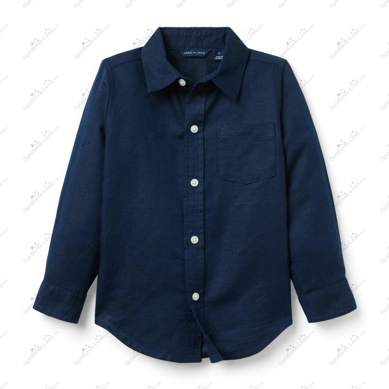 Topp Shirt Long Sleeves Button Up Collar Oxford Linen Cotton Basic Uniform Back To School Suit Dressy