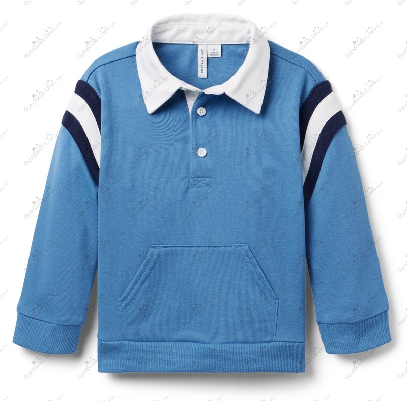 Top Long Sleeve Rugby Colorblock Color Block Kangaroo Pocket Half Button Placket Polo