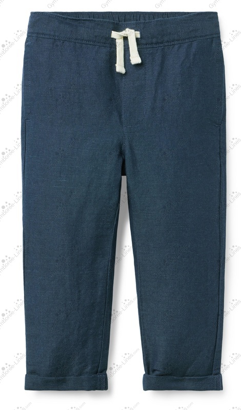 Pants Linen Cotton Draw String Elastic Waist Pockets Basic Uniform Back To School