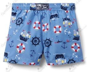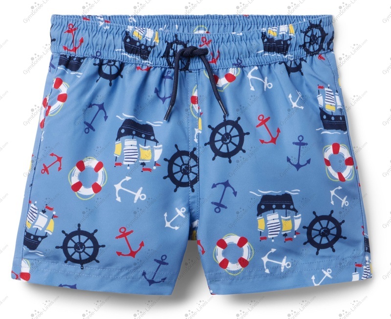 Shorts Trunks Swimwear Swimming Suit Bathing Suit Ship Pirate Ship Life Preserver ANchor Elastic Waistband Pull On Draw String