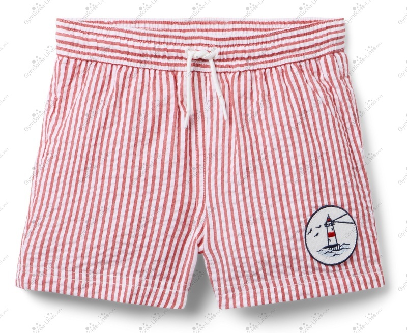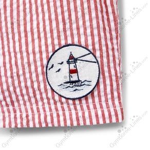 Shorts Swimwear Swimming Suit Bathing Suit Trunks Seersucker Striped Lighthouse Patch Draw String Elastic Waistband Pockets