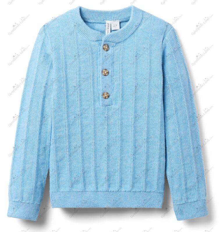 Top Sweater Long Sleeves Pullover Button Placket Textured Henley Basic