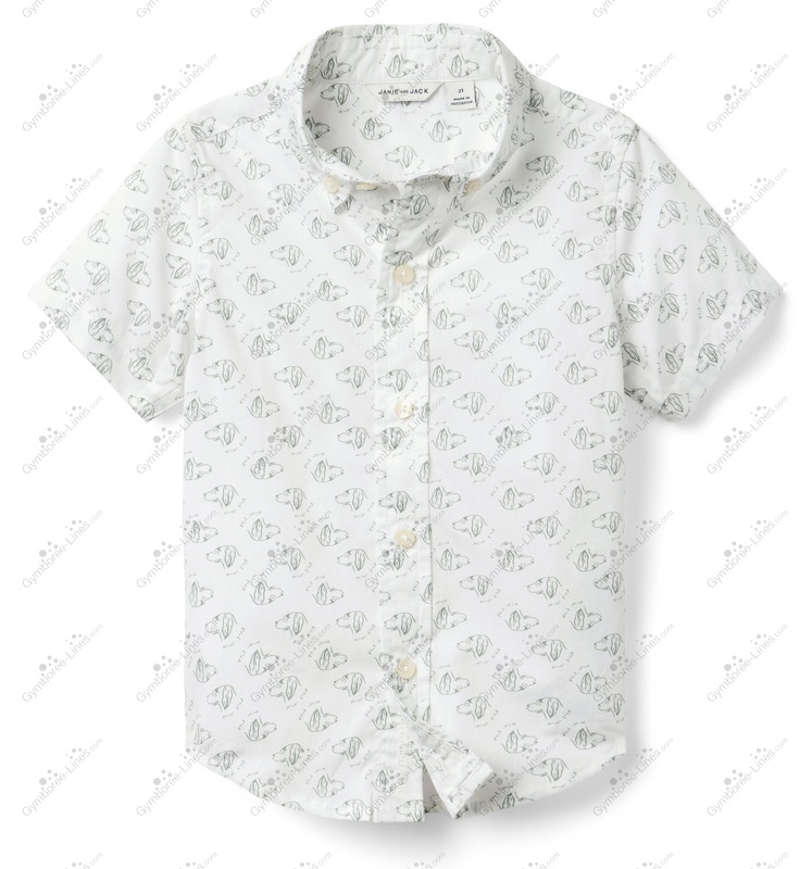 Top Shirt Short Sleeve Doggy Puppy Button Collar Button Up Poplin