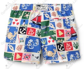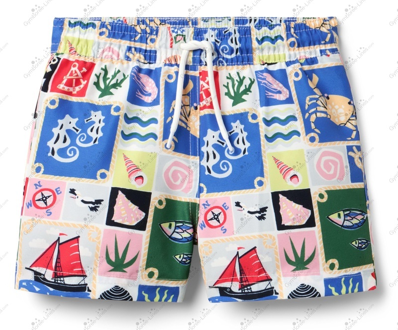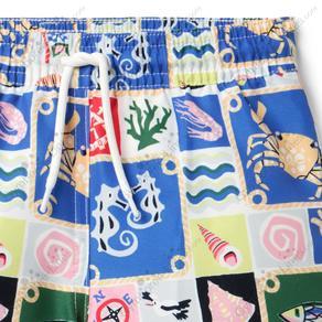 Swimwear Swimming Suit Bathing Suit Trunks Shorts Patchwork Print Seahorse Sea Ocean Crab Lobster Boat Ship Shell Fish Seaweed Mesh Lined