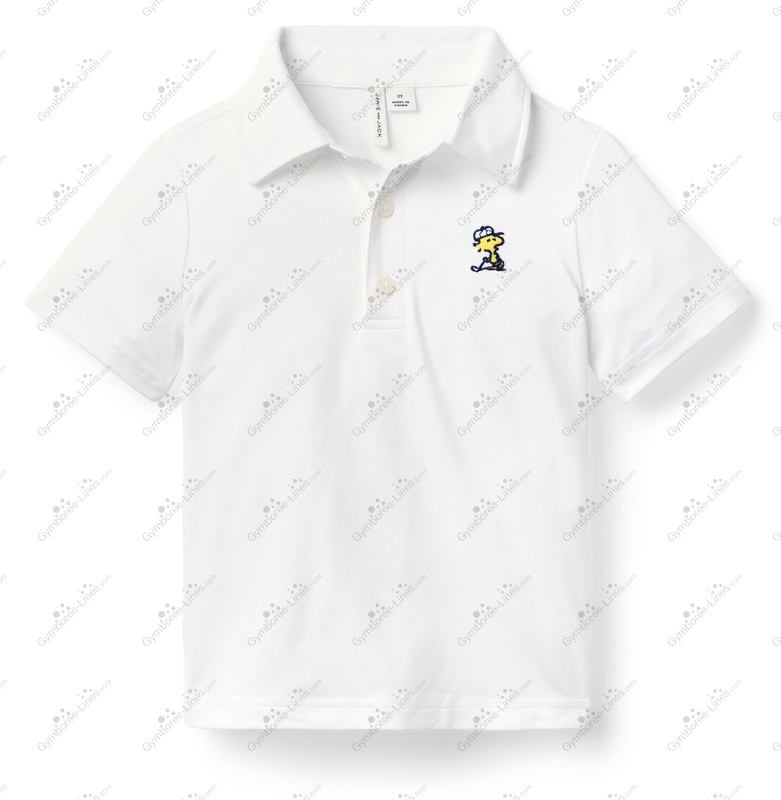 Top Shirt Polo Collar Woodstock Short Sleeve Half Button Placket Embroidered