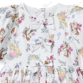 Dress Short Sleeve Puff Sleeves Princess Disney Button back Bow Princess Snowdrop Aurora Belle Cinderella Rapunzel Tiana
