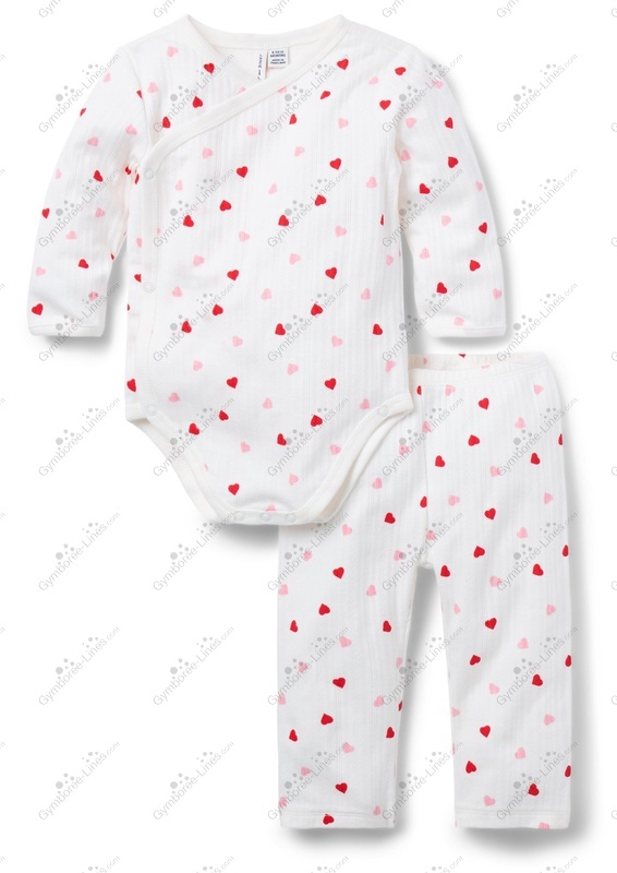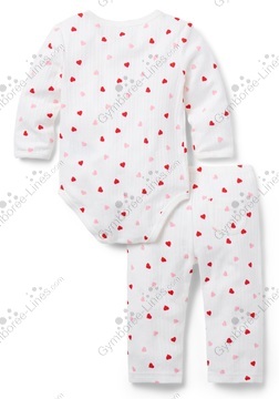 Two Piece Onesie Topp Shirt Long Sleeve Wrap Kimono Snap Crotch Pants Elastic Waistband Pull On Pointelle Set 2 Piece Set Valentine's Day Love Heart
