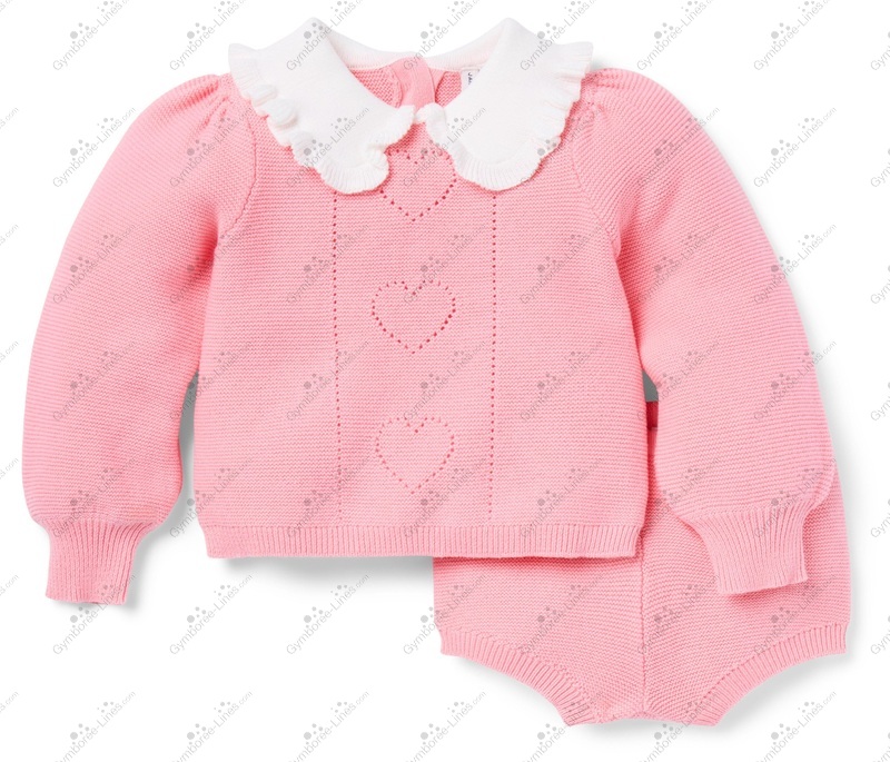 Two Piece Set 2 Piece Set Long Sleeve Ruffled Collar Shorts Bloomers Elastic Waistband Pull On Button Back Heart Pointelle Valentine's Day Love Sweater