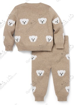 Two Piece 2 Piece Long Sleeve Pants Elastic Waistband Pull-On Sweater Baby Bear Top Cardigan